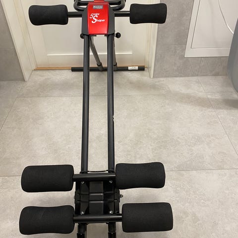 Push-up handtag med skumgrepp i svart och rött. Tillverkade av plast och skumgummi för komfort och stabilitet under träning. Säljs pga används sällan.
