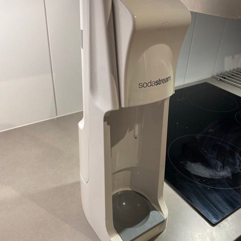 Säljer vit/ cremevit sodastream kolsyremaskin. Stilren design och enkel att använda för att snabbt få kolsyrat vatten hemma. Fungerar utan anmärkning.