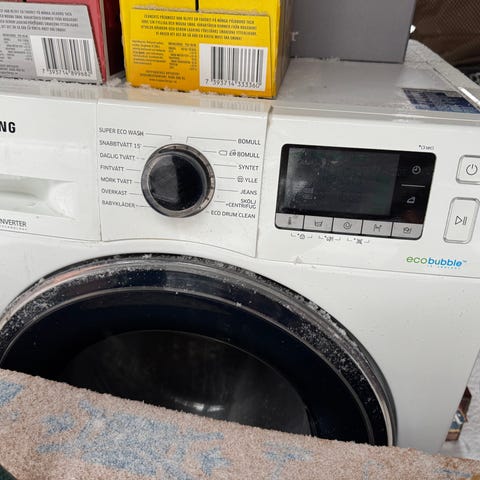 Husqvarna Frontmatad tvättmaskin ProSense med kapacitet på 7 kg. Maskinen är vit och har en frontmatad design. Observera att det finns slitage på gummitätningen vid luckan. Luckan har lossnat flera gånger och då har vi lappat ihop den. Display kan också hänga sig när man byter temperatur tex, då får man bara vänta eller starta om.