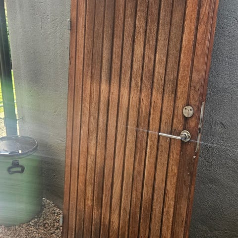 Glaset är tyvärr trasigt på ytterdörren.