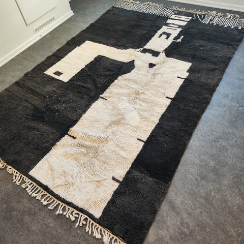 Denna unika handknutna matta från Taznakht i södra Marocko är ett genuint hantverk där tradition möter hållbarhet. Mattan är skapad helt för hand av skickliga berberkvinnor och kombinerar klassisk Taznakht-teknik med vackra inslag av Zanafi-vävning, vilket ger ett levande och karaktärsfullt uttryck.