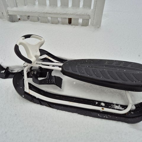 Stiga Classic Snowracer med ratt och styrning. Snowracern är svart och gul, tillverkad i plast och metall. Utrustad med rep för att dra och styrning för enkel kontroll. Passar för barn som vill åka på snö. Säljes 350kr.