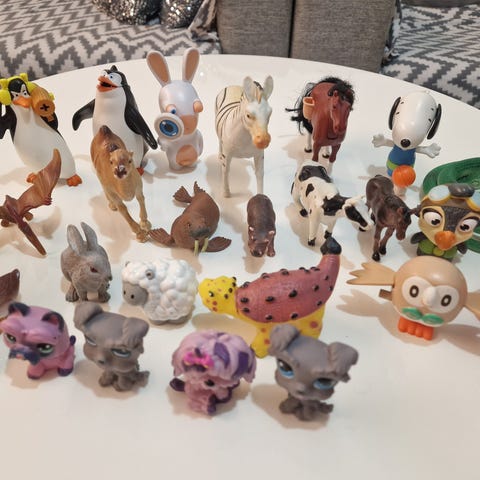 Figurerna varierar i storlek och färg och kan användas för lek eller samling.