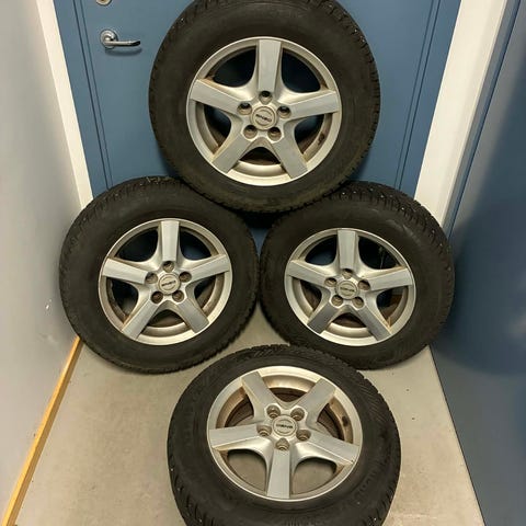Aluminiumfälgar med dubbdäck som passar till Passat 2018. Däckmönster ca fem millimeter.