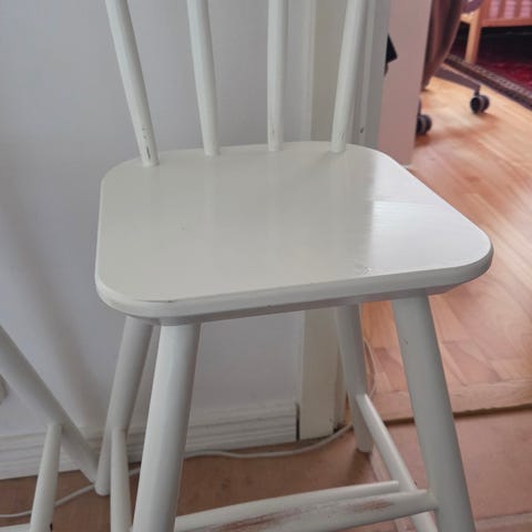 IKEA Barnstolar barnstolar tillverkade i vitt trä. Stolarna är avsedda för barn och har en klassisk design med korsrygg. Några ytskador finns på stolarna, vilket syns på bilderna.