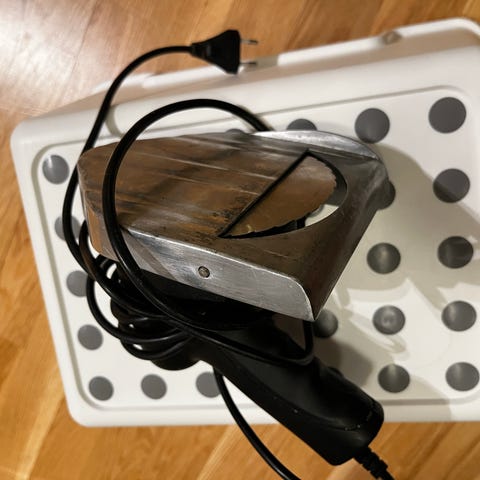 Handtag: Oktagonalt handtag i trä.