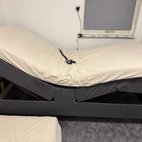 Jensen sängram med justerbar sängbotten i svart färg. Sängramen har metallben och en motoriserad funktion som möjliggör att höja och sänka både huvud- och fotändan av sängen. Passar för att anpassa sovställning efter behov. Ny madrass ingår även köpt för 2 månader sen nypris för 1800kr, Säljer pga flickvännen vill inte sova i en 90 säng… annars väldigt skön o bra säng till en ensam person rekommenderas ej för två! Sängens nypris är 9850kr, storlek 90x200