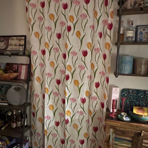 Mkt fin, uppsydd till 230 cm. Helt oanvänd då färgen inte passar resten av inredningen. Har kostat 350 per längd (+ kostnad för att fålla upp den). 2 längder säljes för 350 kr. Den är vit enligt Ohlssons tyger men svagt grå verkligheten, se https://www.ohlssonstyger.se/sv/artikel/diplomat-morklaggande-multibandslangd-135x250-vit-6