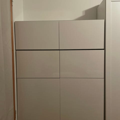 IKEA garderob i träfärg. Möbeln är avsedd för förvaring och är vitlaserad. Passar för olika rum och användningsområden där förvaring behövs.