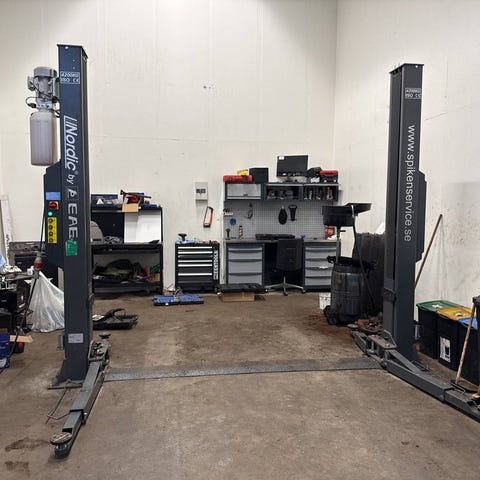BBM billyft i blå färg. Används för att lyfta fordon vid reparation och underhåll. En kolv läcker lite olja men annars i bra skick 4ton ska den klara nermonterad tillverkad 2010