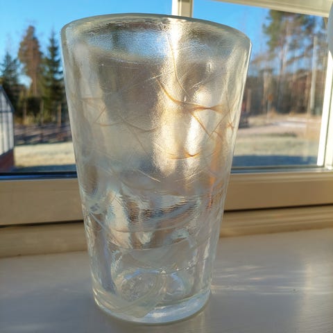 IKEA vas i keramik med en grå färg och räfflad yta.Vasens design är enkel och modern,lämplig för olika inredningsstilar.