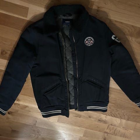 Mörkblå, stl 122/128 (7-8 år) med fickor.