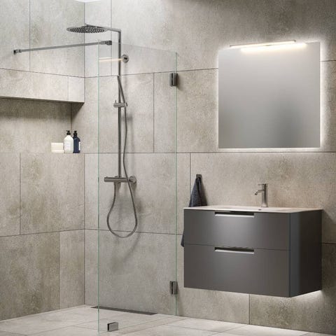 1 st rak duschvägg klarglas, fast, bredd 87,5 x höjd 200 glastjocklek 8 mm.