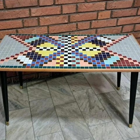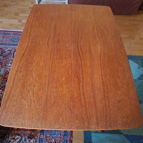 Specialsvarvade Avtagbara ben för lättare transport. Okänd formgivare. Klarlackad original. Ett hörn har färgskiftning.