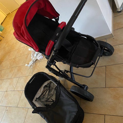 BRIO barnvagn i svart färg. Utrustad med sittdel, sufflett och förvaringskorg under sitsen. Passar för barn och är utformad för att underlätta transport och promenader. Vissa mindre tecken på slitage men fortfarande fullt funktionell och redo att användas många år till.