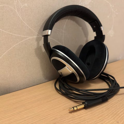 Säljer ett par trådlösa Sennheiser-hörlurar med tillhörande laddningsstation/sändare. Hörlurarna är i gott skick och fungerar utmärkt, saknas bara en kudde i toppen av bygeln, se bild. Perfekt för TV-tittande eller musik hemma. Designade för bekväm användning under längre perioder.