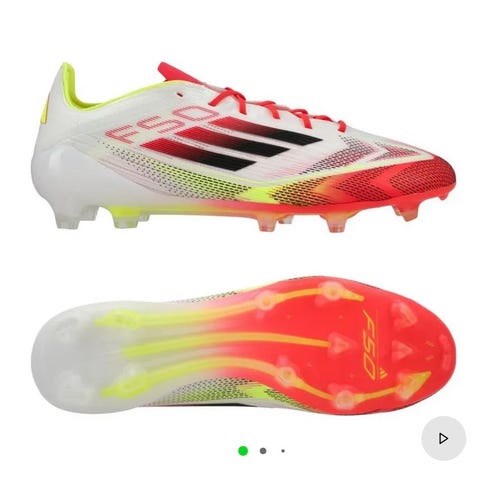 Adidas fotbollsskor i storlek 44, designade för sport och fotboll. Skorna har en kombination av färger inklusive rött, vitt, gult och svart. De är tillverkade med material som ger stöd och komfort vid fotbollsspel.