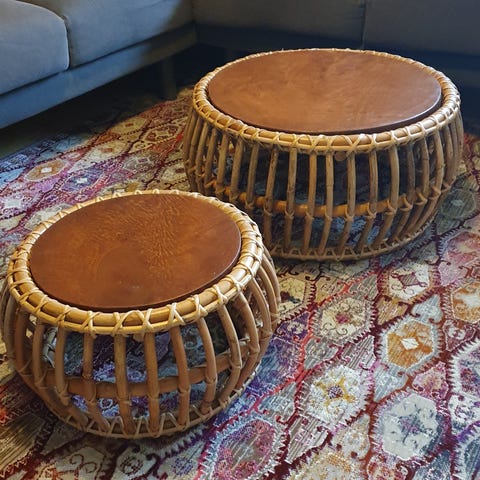 Säljer ett soffbord i teak med hylla undertill i rotting. Soffbordet är troligtvis från 50-talet och är i gott skick, men skulle må bra av en omgång med fint sandpapper och lite teakolja. Avhämtning endast.