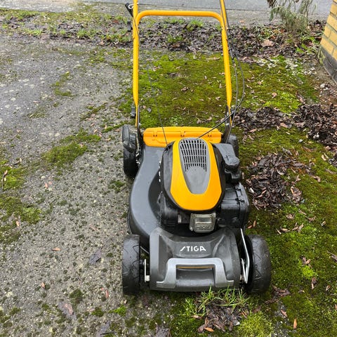 Självgående gräsklippare Stiga med Honda motor.Startar lätt och klipper fint.Ny olja nyslipad kniv och tändstift