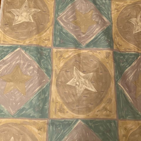 Köpte för att sy en sängkappa och ett överdrag till en sänggavel men köpte en ny säng istället.
