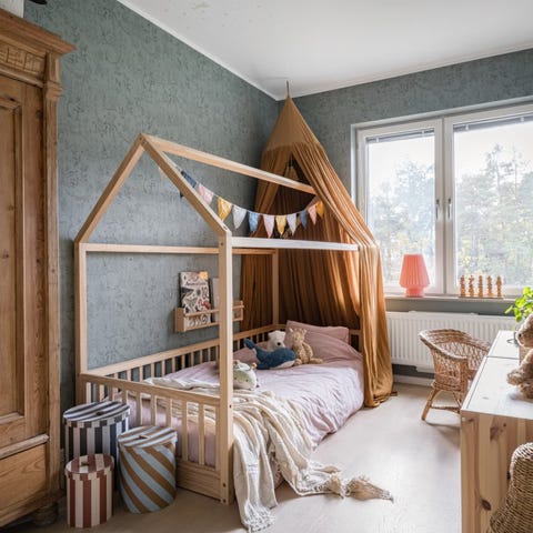 Jollyroom barnrumsmöbler i trä. Består av två enkelsängar i trä med enkel design. Passar för barnrum och erbjuder en naturlig träfinish som kompletterar olika inredningsstilar.