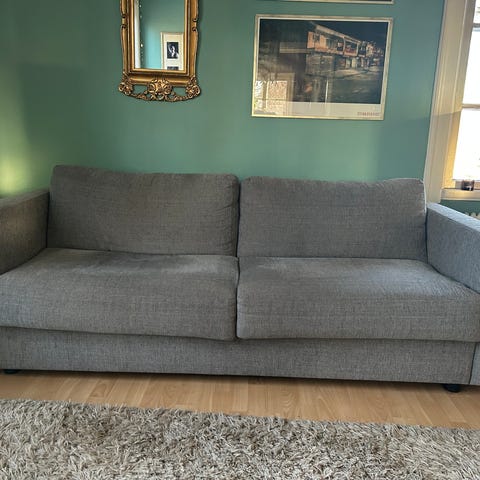 Skön och smidig bäddsoffa säljes. Pälsdjur finns i hemmet. Just nu är schäslongen till vänster. Ta med bärhjälp.