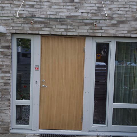 Modern ytterdörr med sidodörr