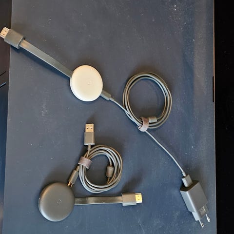 Google Chromecast generation 3. Enhet för att strömma media via HDMI-port till kompatibla skärmar och TV-apparater.