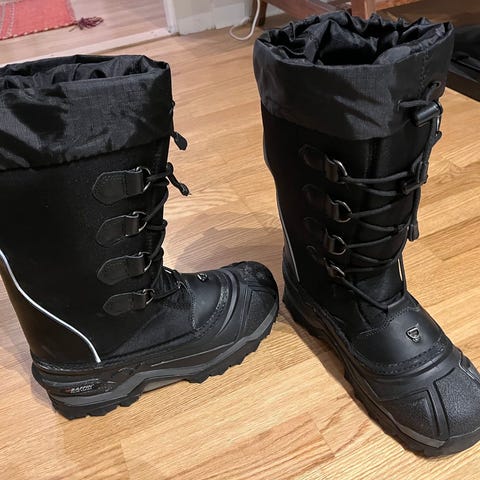 I använt men bra skick. De två saker som vittnar om användning är att en utav fyra utfällbara broddelar saknas. Och i ena skon vid ankelområdet är ullet bortnött. Se bilder. Annars inga hål, slitningar under eller liknande. Alla fyra blixtlås fungerar som de ska. Enligt Pricerunner är billigaste nypris just nu 1900kr på Skoman.