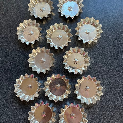 Tio ”blomformade” kakformar, 6,5x2 cm.