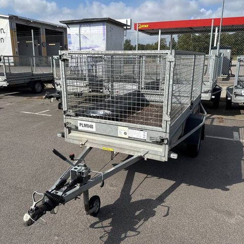 Släpvagn Brenderup L0751 med nätgrind. Årsmodell 2019. En rejäl vagn som passar till de flesta ändamål. Nätgrind som öppnar både fram och bak och som dessutom är mycket enkel att montera av och på.