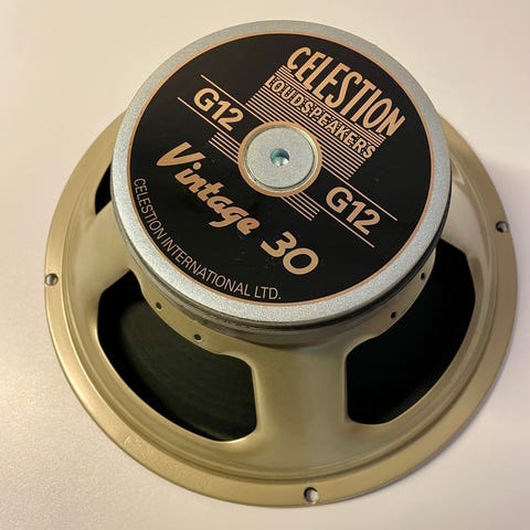 Warehouse G12Q med impedans på 8 ohm och effekt på 20 watt. Högtalare avsedd för användning med gitarrförstärkare.