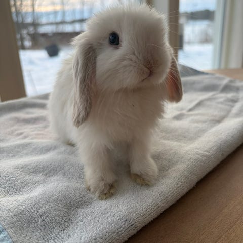 Skutte är en renrasig minilop-hane på drygt 1 år. Han är okastrerad och frisk.