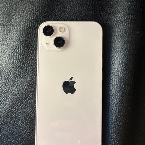 Apple iPhone 13 smartphone med 128 GB lagringskapacitet i rosa färg. Enheten har en kompakt design med två kameror på baksidan. Telefonen levereras i originalförpackning utan laddare. Batteri kapacitet är på 86%