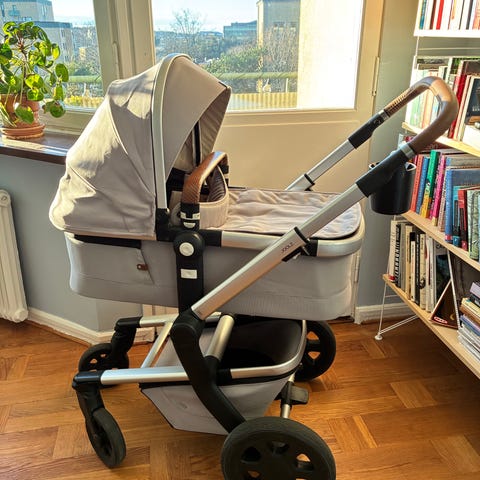 Joolz barnvagn med justerbart handtag och sufflett. Barnvagnen har i princip ny handtag, bygel och hjul som vi fick av försäkringen.