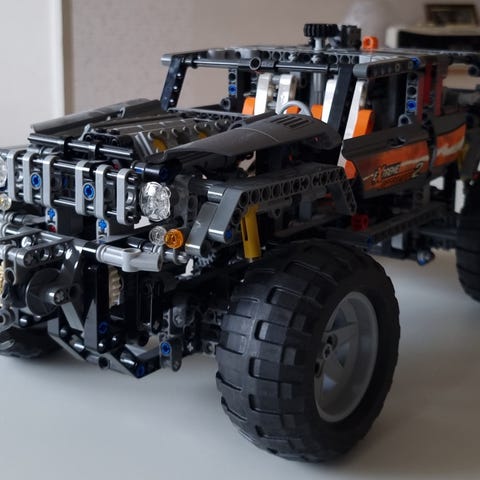 Lysande klossar (Light Bricks): Modellen har inbyggd belysning (rött sken i motorn och gult sken i grillen).