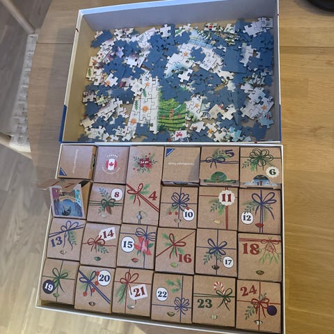 Använts 1 gång, köpte för 1 månad sedan. Kan byta ut puzzlet mot en annan 1000 bitar puzzle med jul tema.