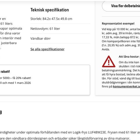 Obs: Knappen för att visa hela beskrivningen har bara en visuell effekt.