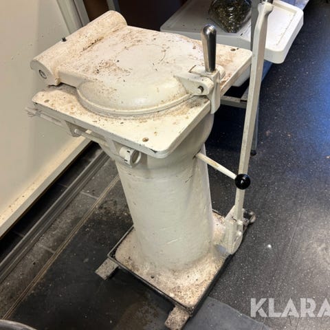 Historik: inköpt och använd I familjebageri under 60-talet, och har sedan dess stått oanvänd I samma byggnad (uppvärmt) sedan dess. Renovering påbörjad för ca 5 år sedan. Provkörd och fungerade efter renovering med provisorisk elmotor som ej var original. Tyvärr välte maskinen och kåpan som sitter som skydd över centrum på bakre hjulet har ramlat bort.