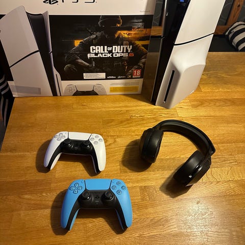 Sony PlayStation 5 Spelkonsol och två handkontroller.