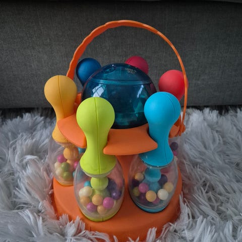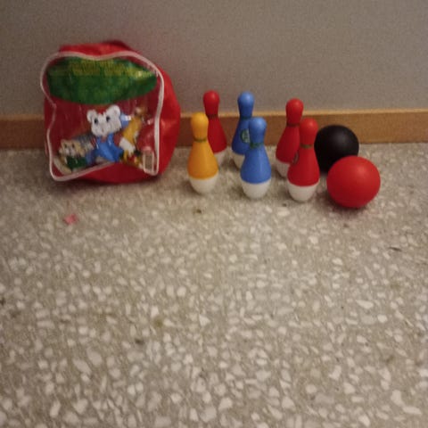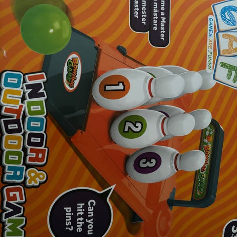 Bowlingset i plast, fint skick förutom kartongen som är lite söndrig.