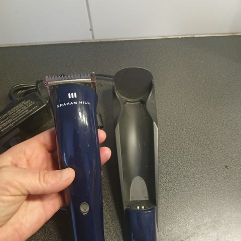 JRL Trimmer med guldfärgat blad. Elektrisk trimmer med blad i metall, utformad för skägg- och hårtrimning. Handhållen design för enkel användning.