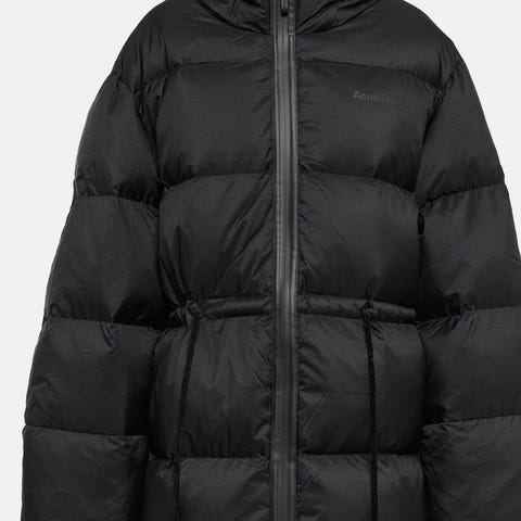 Acne Studios New Powder Parkas i svart färg, tillverkad i nylonmaterial. Damstorlek 34. Ytterplagg med vadderad insida (dun) för extra värme.