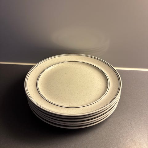 Ett par tallrikar har ngn flisa kanten som lossnat.