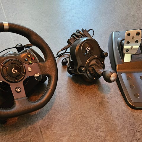 Logitech G920 ratt och pedaler. Riktigt bra instegsmodell. Fungerar på både PC och Xbox. Min son började köra Februari 2024 och har kört ca 150 timmar. Ratt och pedaler är i väldigt bra kosmetiskt skick.