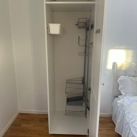 Säljer ett Nimo Ironmaid strykskåp. Dvs inbyggd strykbräda i ett svart skåp. Se bilder och länk. Hänga på väggen, upphängningsbeslag ingår.
