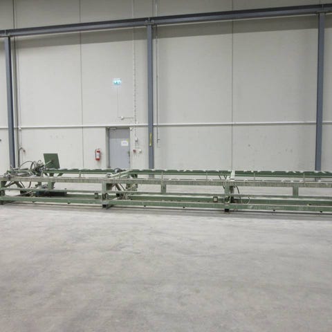 Hydrauliskt spikbord med klämfunktion NVI. Mått i stängt läge är ca 245x850cm.