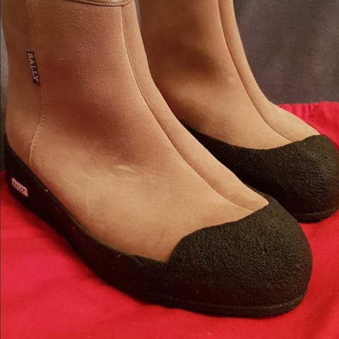 Snygg curling känga från Bally med platå sula. Behöver aningen omvårdnad hos skomakaren där främre delen av den nya skosulan behöver fästas. Litet och billigt ingrepp.