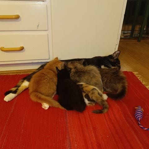 Det är 5 kattungar, varav 3 honor och 2 hanar. Dom är sociala,