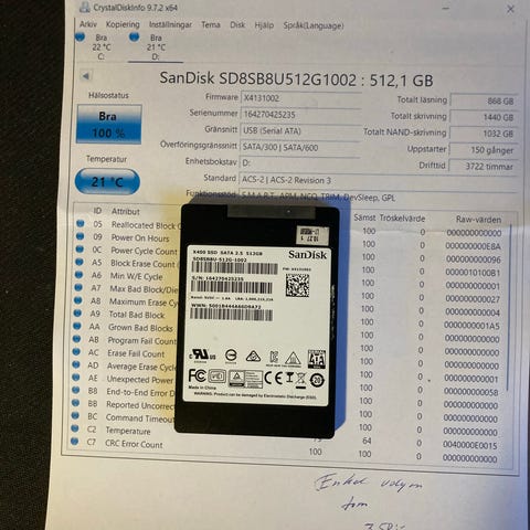 Samsung 850 PRO SSD med en lagringskapacitet på 512GB. Solid State Drive med SATA-gränssnitt som erbjuder snabb dataöverföring och pålitlig prestanda för lagring och åtkomst av filer.